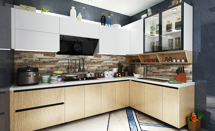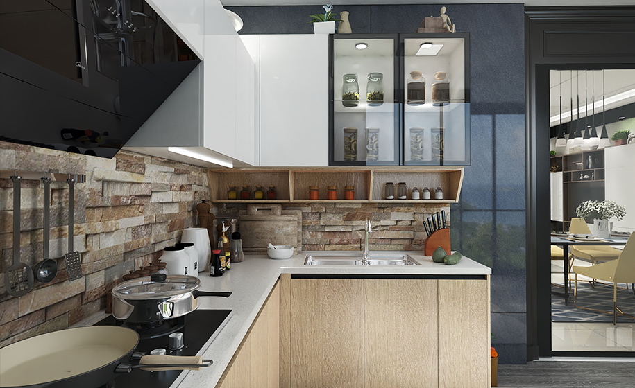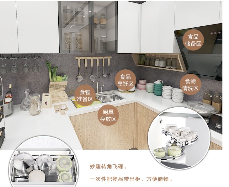 除了做料理臺與用餐區(qū),還能嵌入各種電器設備,旁邊的儲物柜可幫助收納;