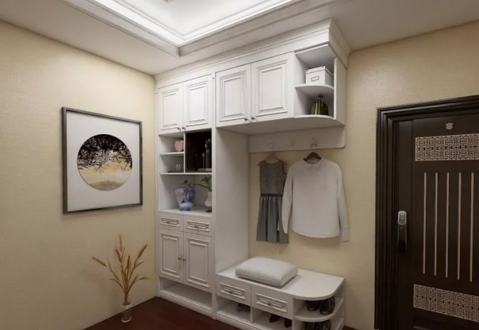 入戶是連接室內(nèi)與室外的橋梁,在入戶處打造一個高柜,方便存放鞋子、外套、鑰匙、手提包等,這樣可以把雜物統(tǒng)統(tǒng)隱藏起來,還入戶一個清爽環(huán)境。