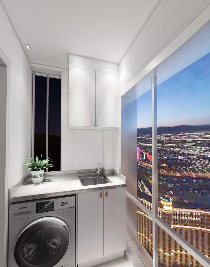 在陽臺的一邊或者整個空間定制一個儲物柜,收納空間倍增,相當(dāng)于多了一間儲物室。